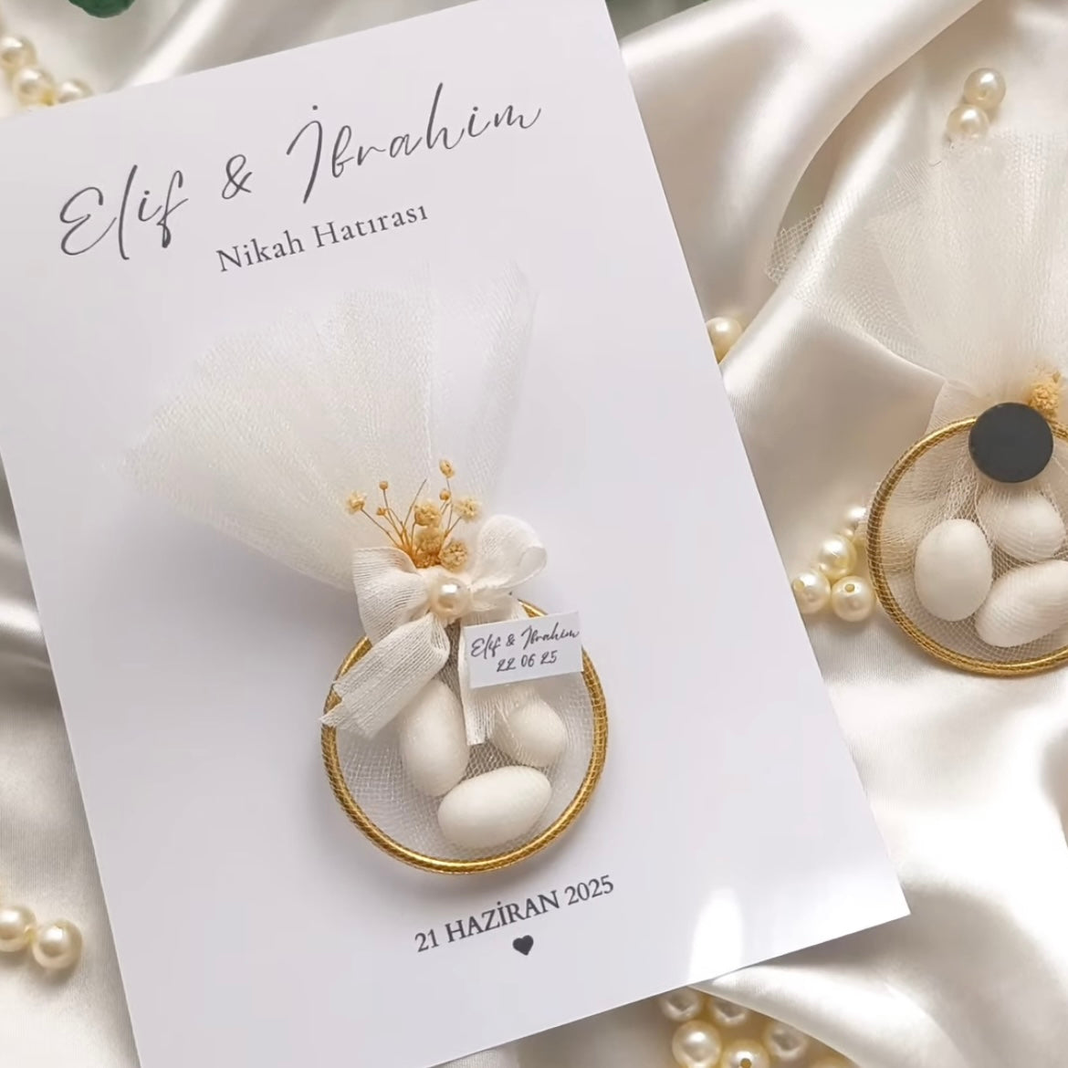 بطاقة خاتم صغيرة مع اللوز المحلى، تم إعدادها يدويًا، لجعل جميع مناسباتك لا تُنسى: الزفاف، المعمودية، الولادة، الخطوبة، الزفاف الديني، حفل استقبال الطفل...