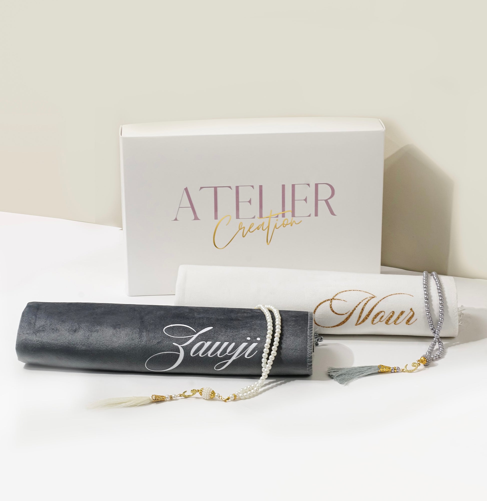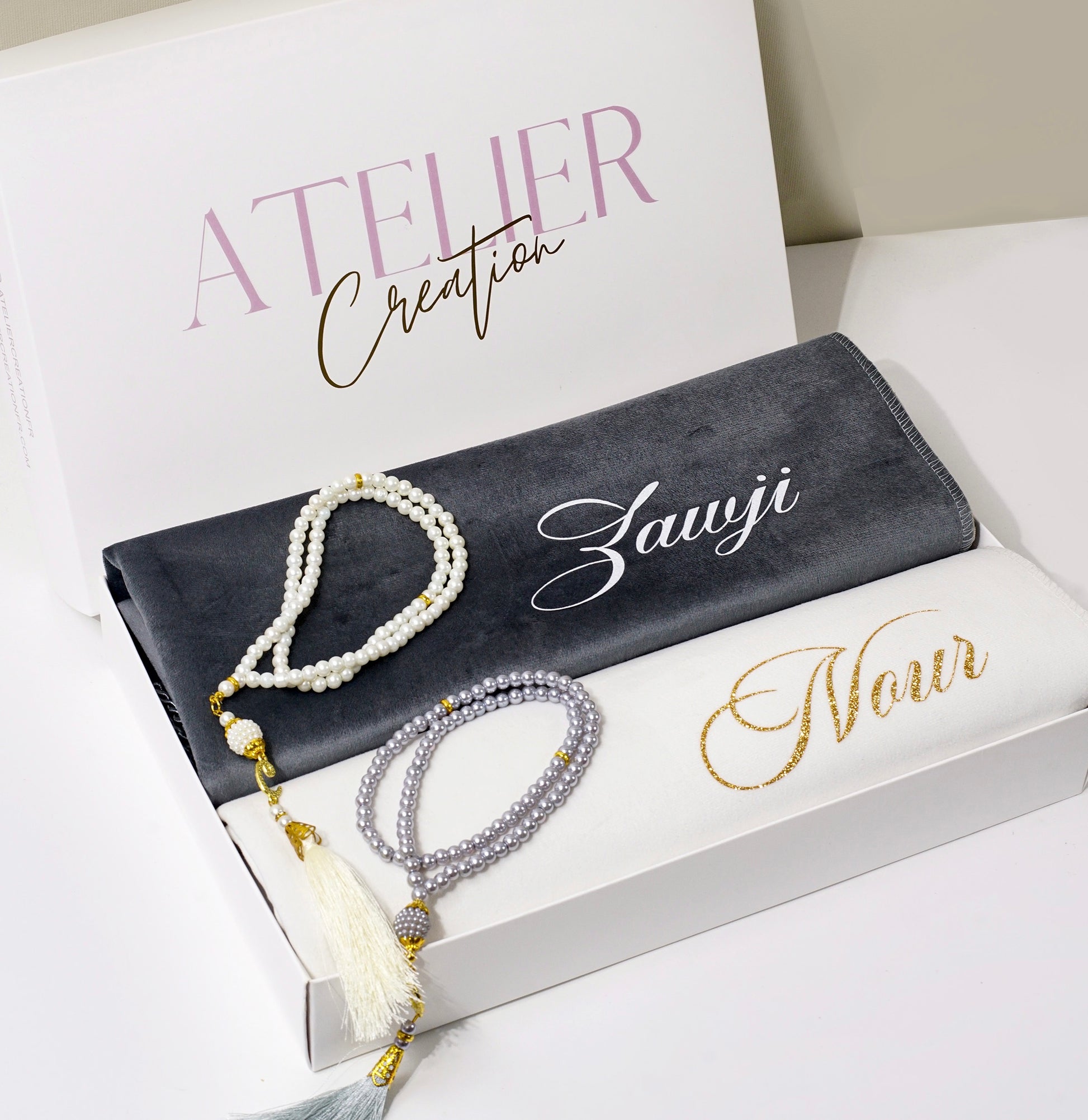 اكتشف سجادة الصلاة الرمادية والبيضاء، رمزًا لللحظات الروحية المشتركة والاتحاد المقدس. قدّم هدية رمزية لشريك حياتك، أو لزوجين متحدين، لتعزيز الوئام بينهما. اخلق جوًا هادئًا وأنيقًا في منزلك مع هذه السجادات ومسابح الصلاة للرجال والنساء.