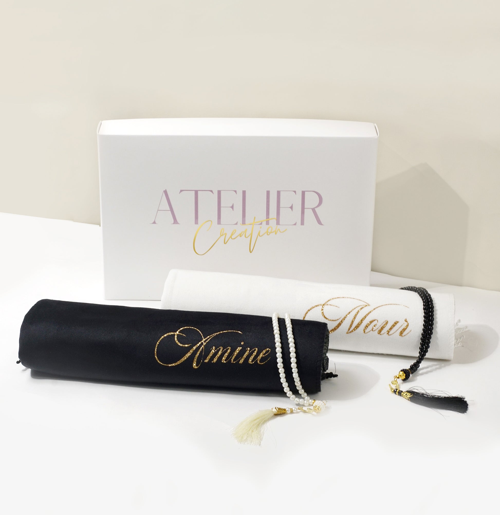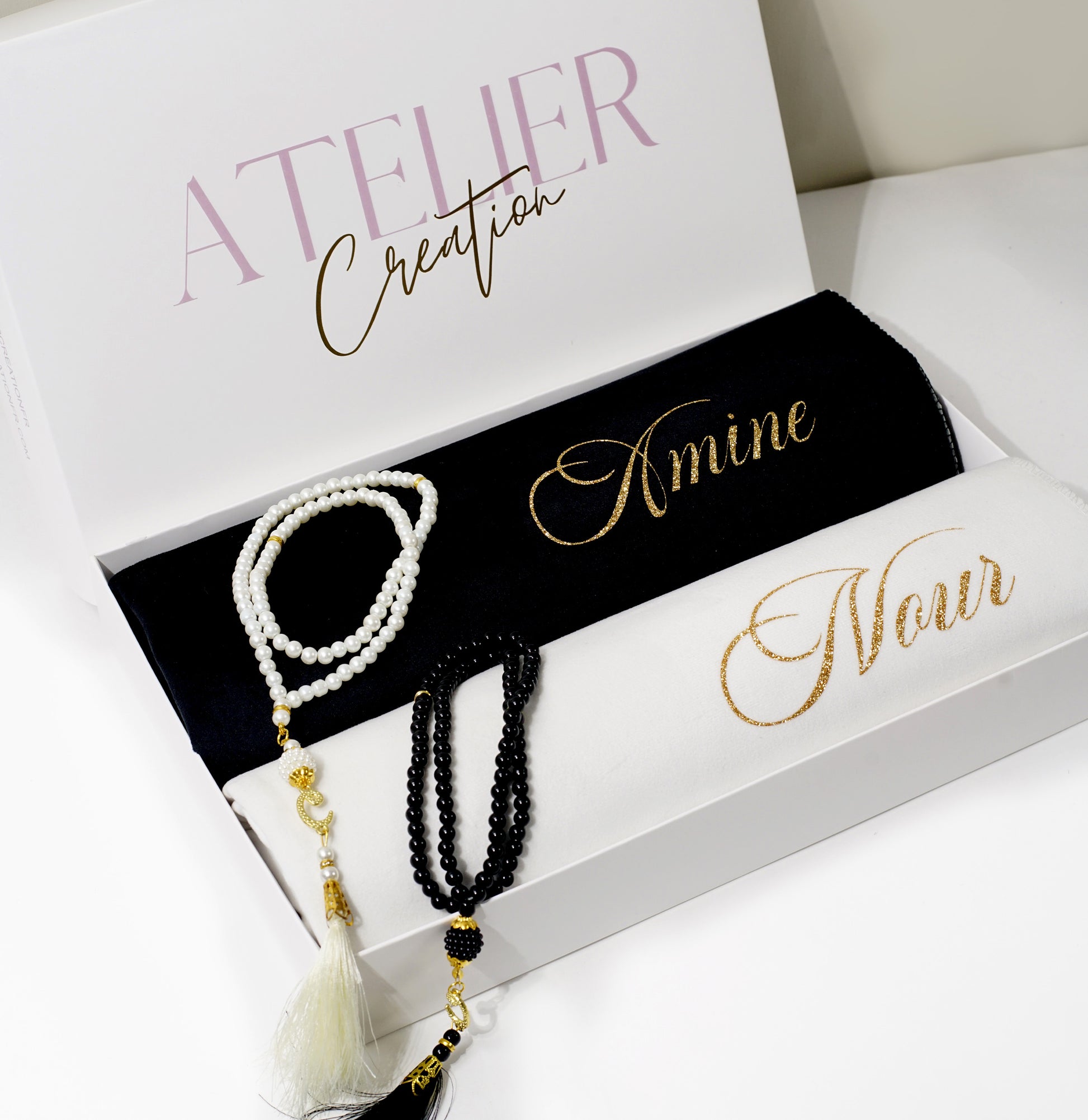 اكتشف سجادة الصلاة السوداء والبيضاء، رمزًا لللحظات الروحانية بين الزوجين والوحدة المقدسة. قدّم هدية رمزية لشريك حياتك، أو لزوجين متحدين، لتعزيز الوئام بينهما. اخلق جوًا هادئًا وأنيقًا في منزلك مع هذه السجادات ومسابح الصلاة للرجال والنساء.