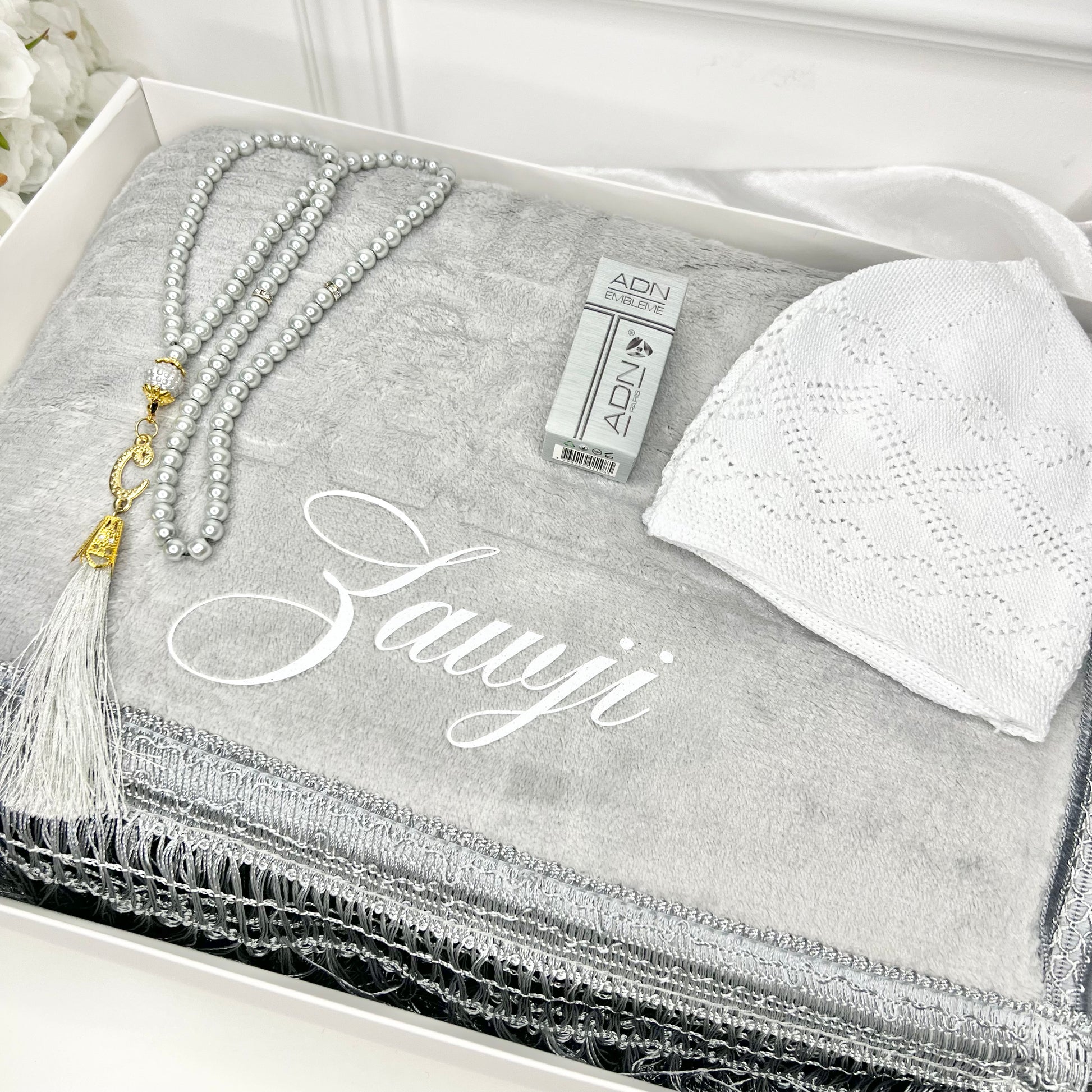 اكتشفوا صندوق سجاد "إمبلم" الفاخر والقابل للتخصيص. سجادة رمادية سميكة غير قابلة للانزلاق، مع شاشية، ومسبحة فاخرة، ومسك "إمبلم دي إن إيه"، كل ذلك في صندوق هدايا حصري. دلّلوا أحبائكم بلمسة شخصية مع هذا الصندوق الفريد.