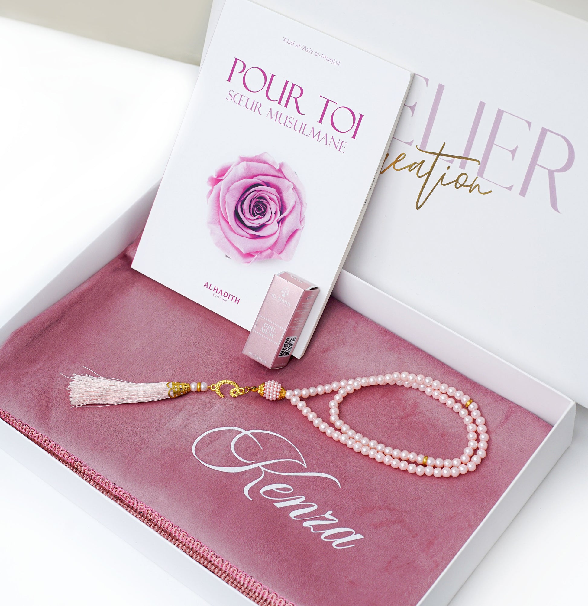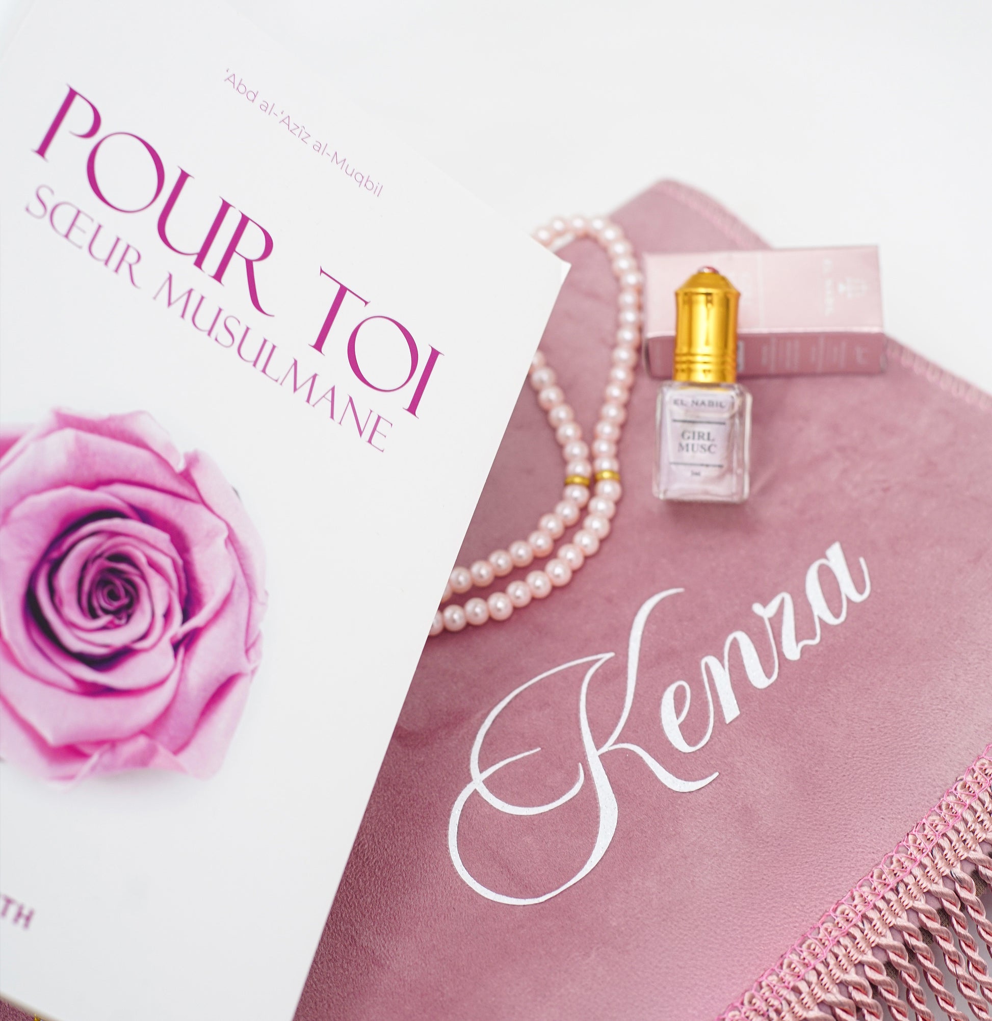هذه المجموعة القابلة للتخصيص هي الهدية المثالية لأخت أو صديقة مسلمة. مع سجادة الصلاة الفريدة، ستصلي براحة وجمال. قطعة أساسية مؤثرة ستُظهر لها مدى أهميتها لديك. أهديها هذه المجموعة للتعبير عن صداقتك وتقديرك.