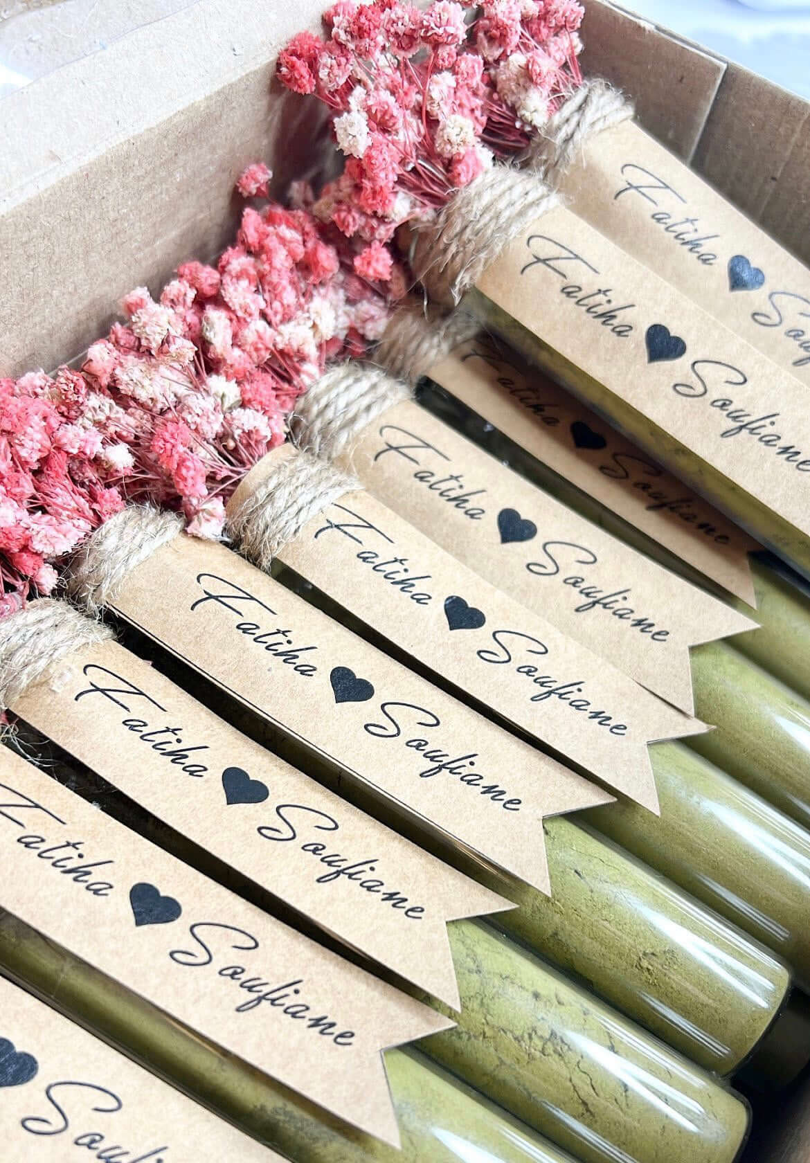 أذهل ضيوفك بمجموعتنا من هدايا الضيوف المعدة يدويًا لجعل جميع مناسباتك لا تُنسى: الزفاف، المعمودية، الميلاد، الخطوبة، الزفاف الديني، حفل استقبال الطفل، إلخ.