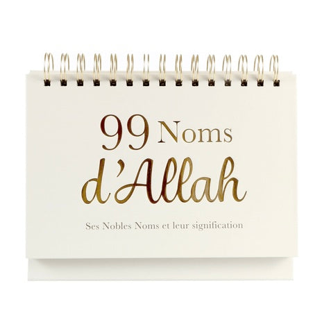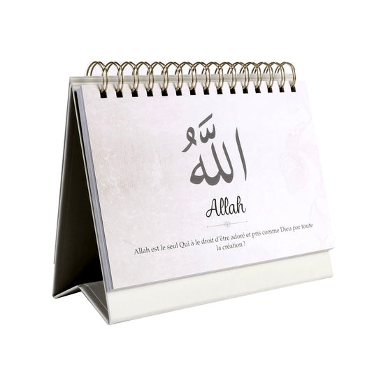 اكتشف أسماء الله الحسنى التسعة والتسعين - عزز معرفتك لتقوية إيمانك. هذا التقويم المكتبي ذو الغلاف الحلزوني يُقدم لك تذكيرًا روحيًا يوميًا. مُقدم على حامل صلب بلون كريمي مع لمسات ذهبية أنيقة.
