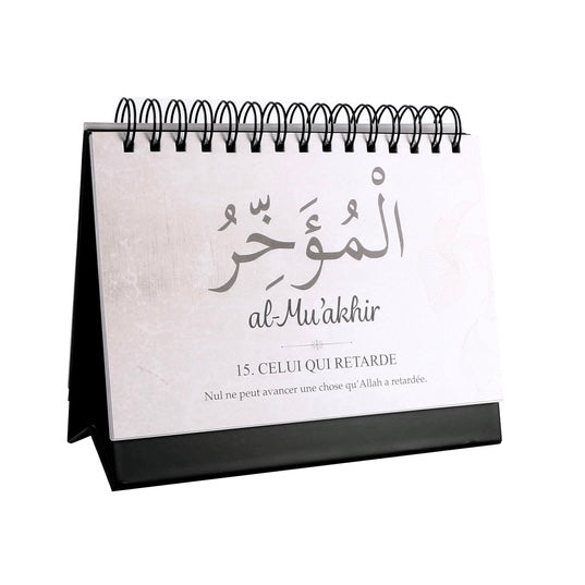 اكتشف أسماء الله الحسنى التسعة والتسعين - عزز معرفتك لتقوية إيمانك. هذا التقويم المكتبي ذو الغلاف الحلزوني يُقدم لك تذكيرًا روحيًا يوميًا. مُقدم على حامل أسود متين بحواف ذهبية أنيقة.