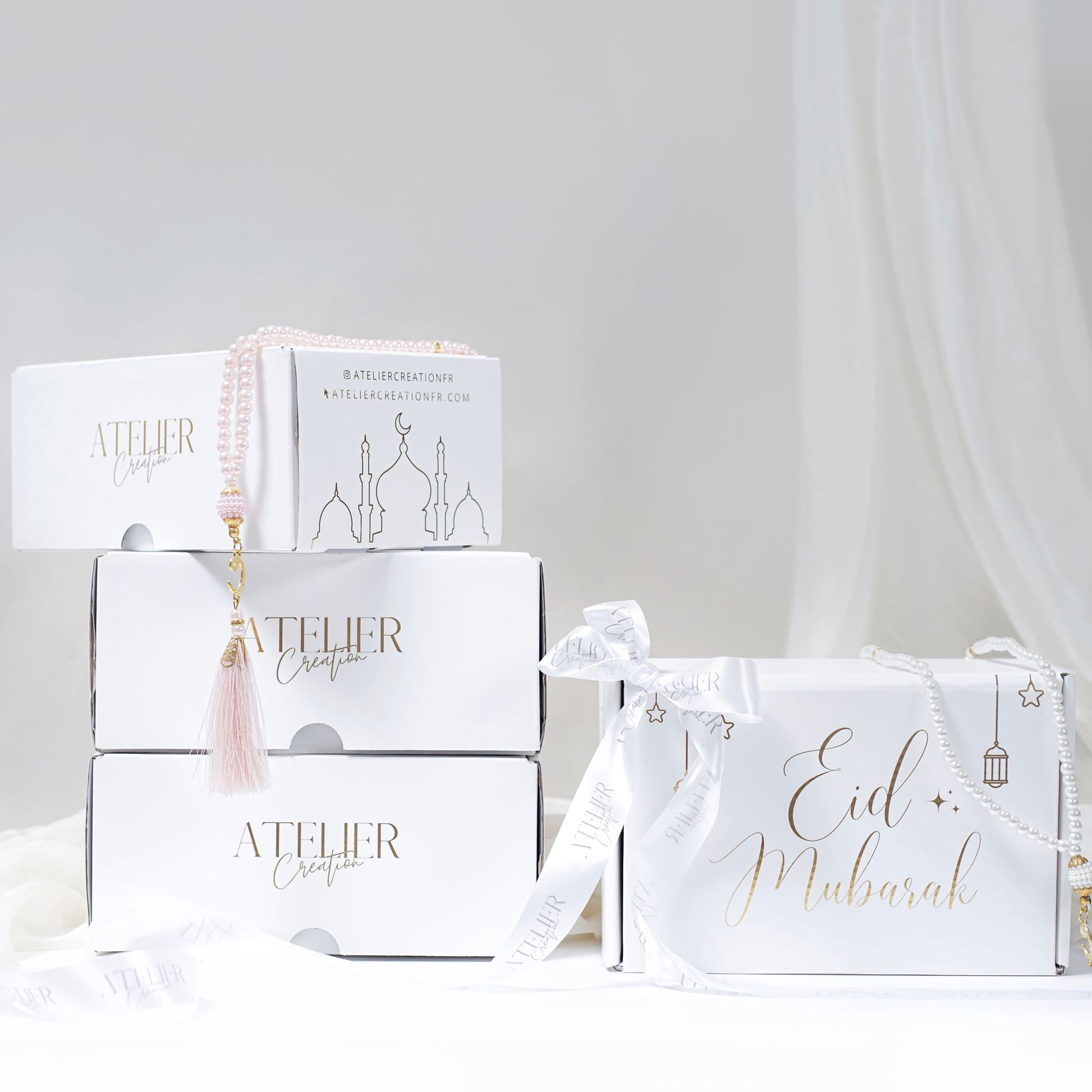 Offrez un moment d’émotion avec notre coffret cadeau Eid Mubarak au design élégant et raffiné.