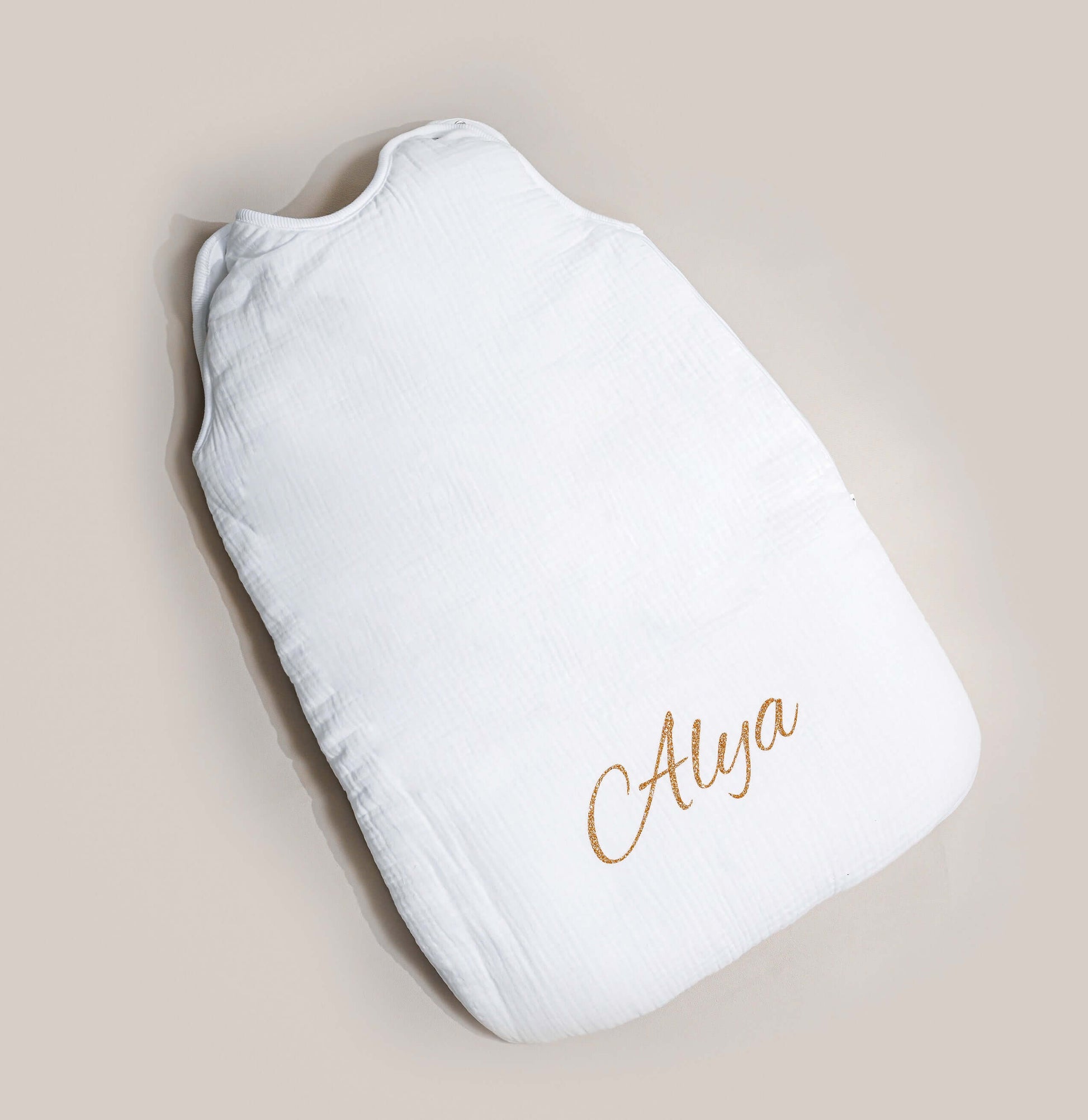 Este saco de dormir de gasa de algodón, personalizado con una palabra única, garantiza a tu bebé un sueño tranquilo y una comodidad óptima.