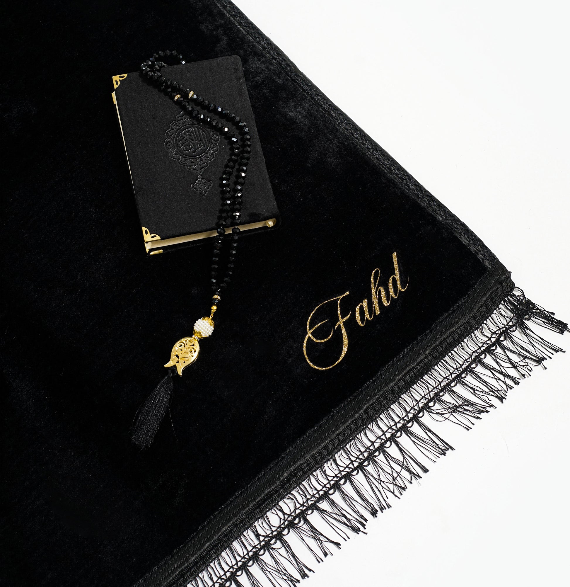 Tapis de prière uni semi épais noir à personnaliser