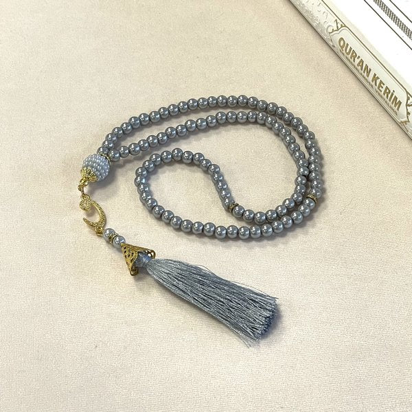 Descubra este tasbih cinzento composto por 99 elegantes contas, perfeito para acompanhar os seus momentos de meditação e oração. O seu trabalho meticuloso combina beleza e simplicidade, oferecendo um acessório requintado e prático. Ideal para fortalecer a sua concentração e dar um toque de elegância ao seu ritual diário.