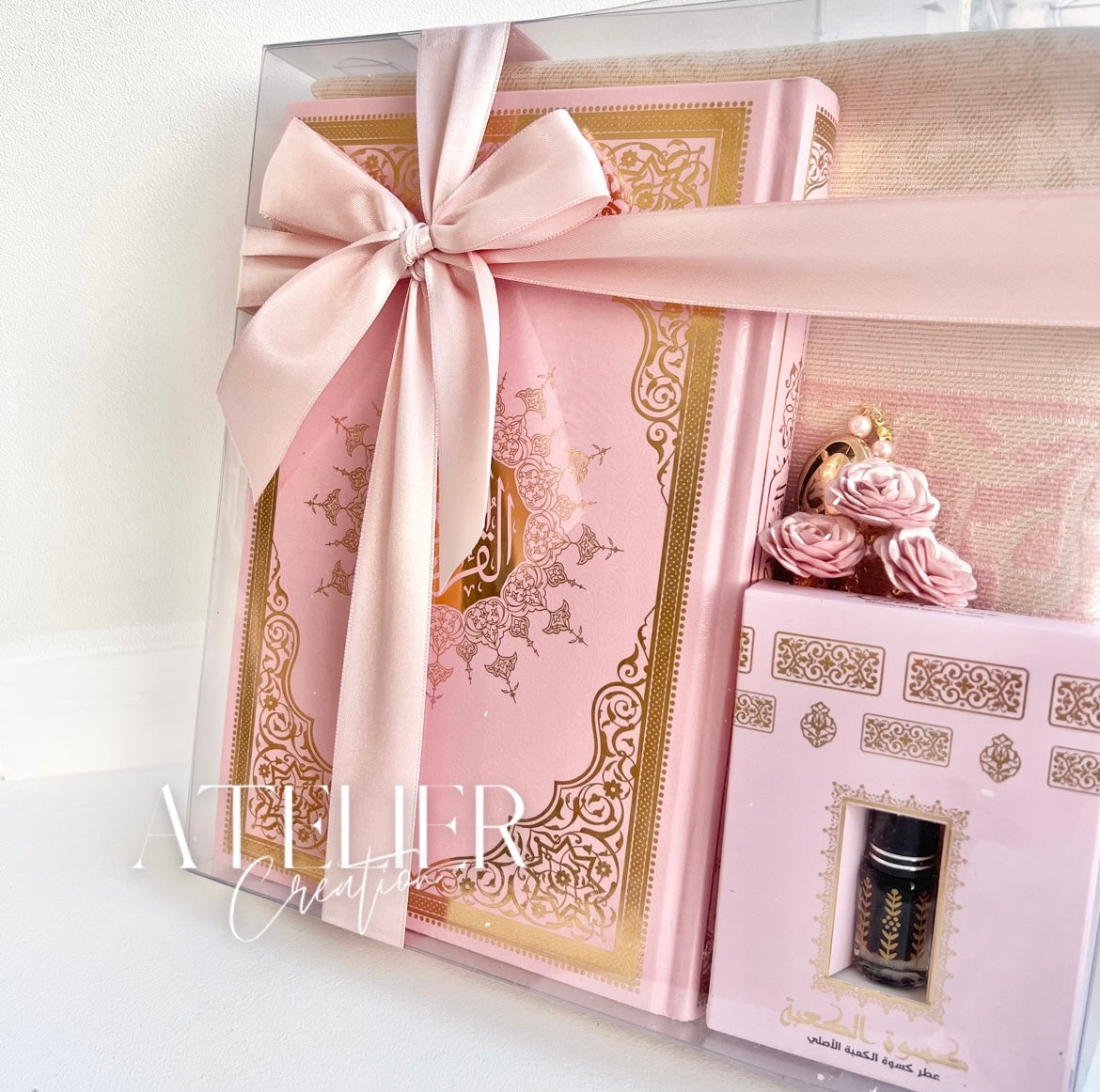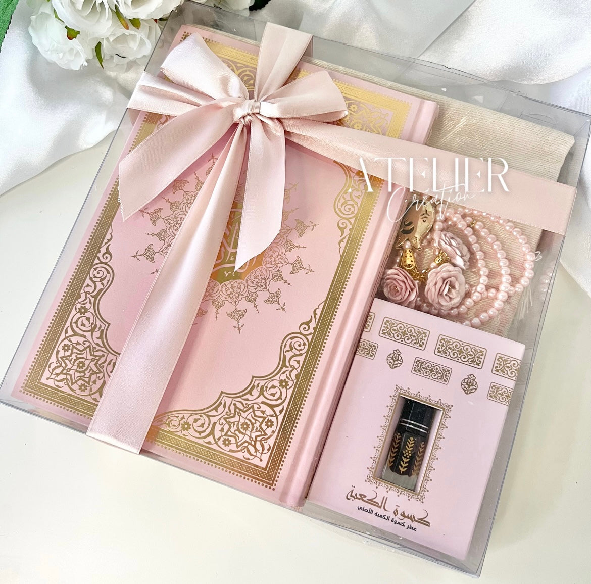 Grande conjunto de caixa rosa do Alcorão francês/árabe